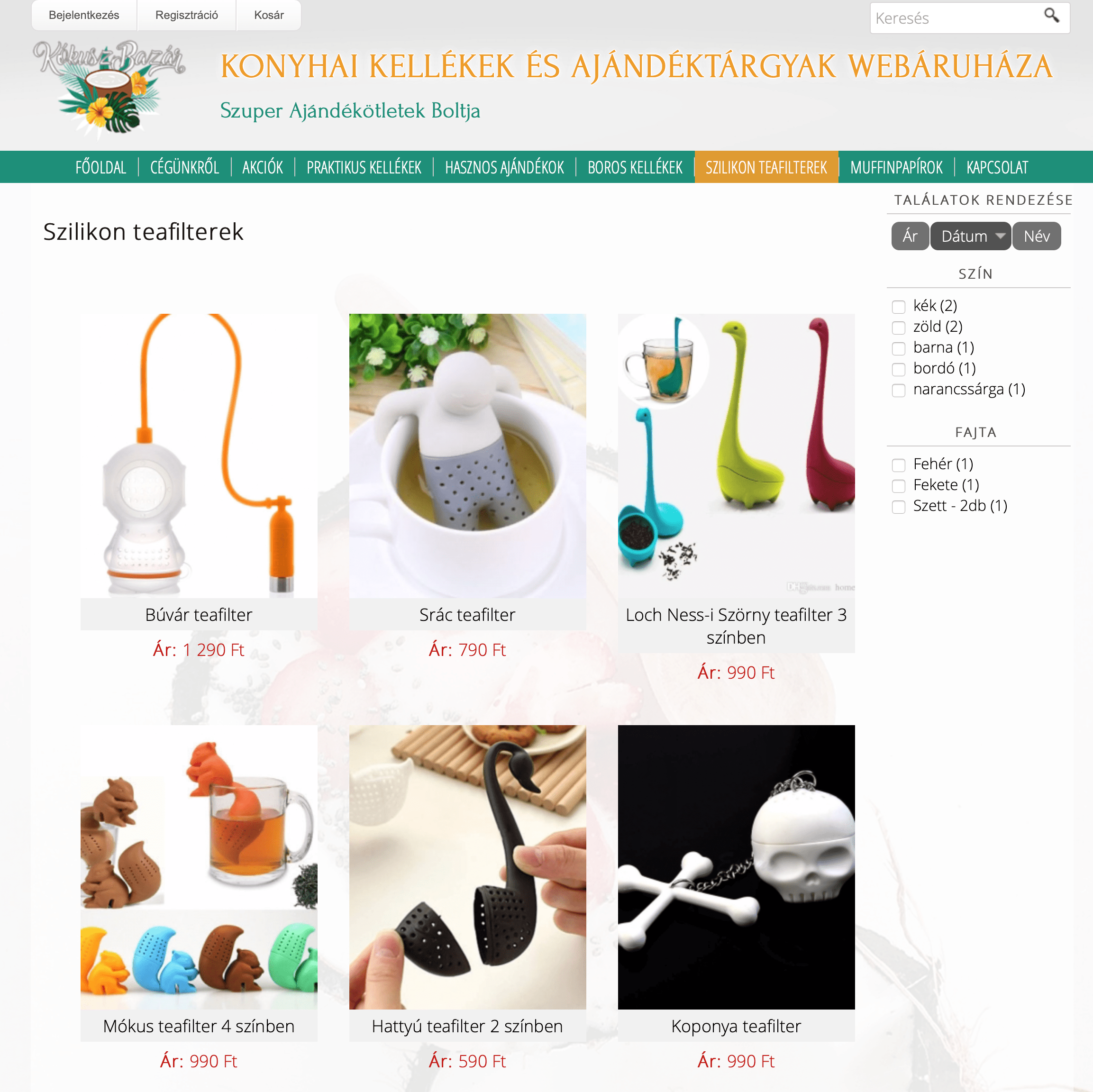 Az unalmas konyhai munkák is szórakoztatóbbá és hatékonyabbá tehetők némi fantázia és néhány jópofa eszköz segítségével. Ezeket a vicces, de praktikus konyhai eszközöket megvásárolhatja a Kókusz Bazár webáruházban. A webshop folyton megújuló termékei között olyan praktikus eszközök is megtalálhatók, mint a tea filter, a sör és bornyitó vagy éppen a szilikon ételcsipesz, amelyek nélkülözhetetlen kellékei lehetnek egy izgalmas kerti partinak. Természetesen ezek a termékek egytől egyig kiválóak akár ajándéknak is, hiszen amellett, hogy rendkívül praktikusak, sőt már-már nélkülözhetetlenek szinte minden háztartásban, még kiváló dekorációi is lehetnek a konyhának, egyedi, tréfás megjelenésüknek köszönhetően. A webáruház készítés első lépéseként a megfelelő kategóriák kiválasztása volt a legfontosabb feladatunk. Fontos volt, hogy a vásárlók számára egyértelmű legyen, hogy milyen termékeket találhatnak az adott kategória alatt, hiszen így gyorsabbá és hatékonyabbá tehetjük a vásárlást. Persze, ha időnk engedi érdemes alaposan végigböngészni a terméklistát, hiszen olyan különleges és hasznos eszközt is találhatunk, ami eszünkbe sem jutna. A webáruház készítés folyamatának a másik fontos lépése az egyedi, mégis egyszerű design megtervezése. Ezzel segítünk megteremteni egy kellemes hangulatot a vásárlás során, anélkül, hogy akadályoznánk a webáruház működését, és a vásárlók céljainak elérését.